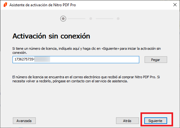2. Pegar la Serial, luego Clic en [Siguiente]